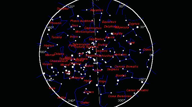 Os mapas são apresentados de forma permanente, portanto, em qualquer ano eles são válidos. Os mapas se referem ao hemisfério sul. Os mapas se referem ao dia 15 do mês ás 0 horas, mas não se preocupe se não for o dia ou horário que você pretende fazer a observação, basta basear-se nos mapas. Por último, observe a posição da rosa dos ventos antes de começar, lembrando sempre que o sol nasce no Leste.
